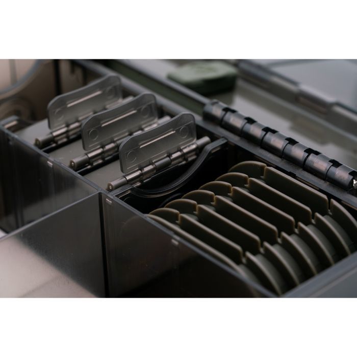 La Boîte de Montage elle-même est un système de rangement complet, conçu pour vous permettre d’avoir le maximum de votre kit à portée de main, pour minimiser les allers-retours incessants. Un ‘grand frère’ au Coffre Tackle Safe, la Boîte de Montage est une option alternative pour ceux qui nécessitent juste un petit peu de montage en plus sur la rive pour les sessions plus longues, les voyages à l’étranger, ou juste pour s’assurer d’être prêt à n’importe quelle situation de pêche qui pourrait se présenter.