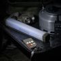 La Lumière de Biwy avec Télécommande Nitelife 150 est une unité compacte remplie de caractéristiques avec six options de lumière, jusqu’à 80 heures d’éclairage, un pack d’alimentation d’urgence, et une fonction télécommande. Une opération une touche vous permet de faire le tour des trois luminosités de lumière blanche, rouge, et une lumière Bug-Less ambre, avec des ondes de 610 nanomètres qui sont moins attractives pour les moustiques et autres bêtes. Une seule touche longue active la lumière, et quatre LEDs internes fournissent une indication du niveau de la batterie et le statut de la charge. La Lumière de Biwy avec Télécommande Nitelife 150 peut être facilement positionné sur le toit du biwy pour illuminer l’abri la nuit, grâce aux deux aimants puissants à l’arrière de la lumière, tenus en place avec la plaque de support en acier fourni avec le logo Trakker en relief dessus.
