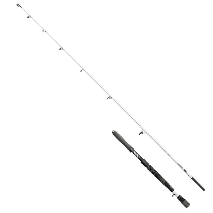 Ces cannes sont spécialement conçues pour la pêche du silure en bateau ventral, de plus en plus populaire. Elles ne mesurent que 1,80 mètre de long. Poignée courte pratique et anneau métallique à l'arrière, pour un cordon de sécurité. Si la canne tombe accidentellement à la mer, elle ne sera pas perdue. Des contrepoids à l'arrière compensent la perte d'équilibre en coupant la poignée courte. Elle est équipée d'un blank en nano carbone 30TC, de grips en mousse EVA de dureté 70, d'anneaux SeaGuide® et d'un porte-moulinet ALPS® en aluminium.