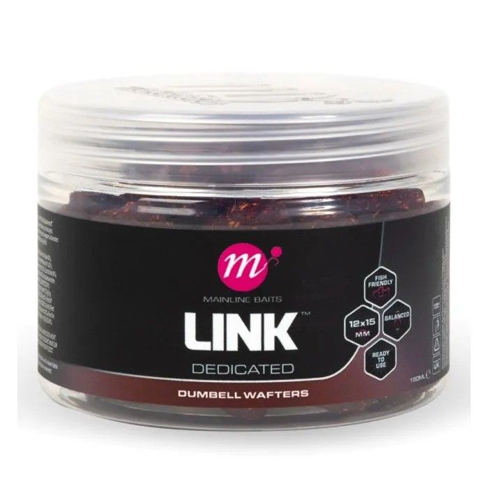 Utilisant un mélange fiable de poudre de liège, les Dedicated Dumbell Wafters ont été conçus pour créer une présentation d’appât « équilibrée de façon critique » en utilisant le poids de l'hameçon pour contrebalancer la flottabilité de l'appât qui coule lentement. Ils sont donc faciles à utiliser et constituent l'appât parfait pour les montages tels que le Spinner Rig et le German Rig. Ils sont parfaits pour être pêchés avec des sacs PVA ou sur d'autres appâts de la gamme Dedicated. Disponible en : Cell, Essential Cell, Link etISO Fish, pots de 150ml.