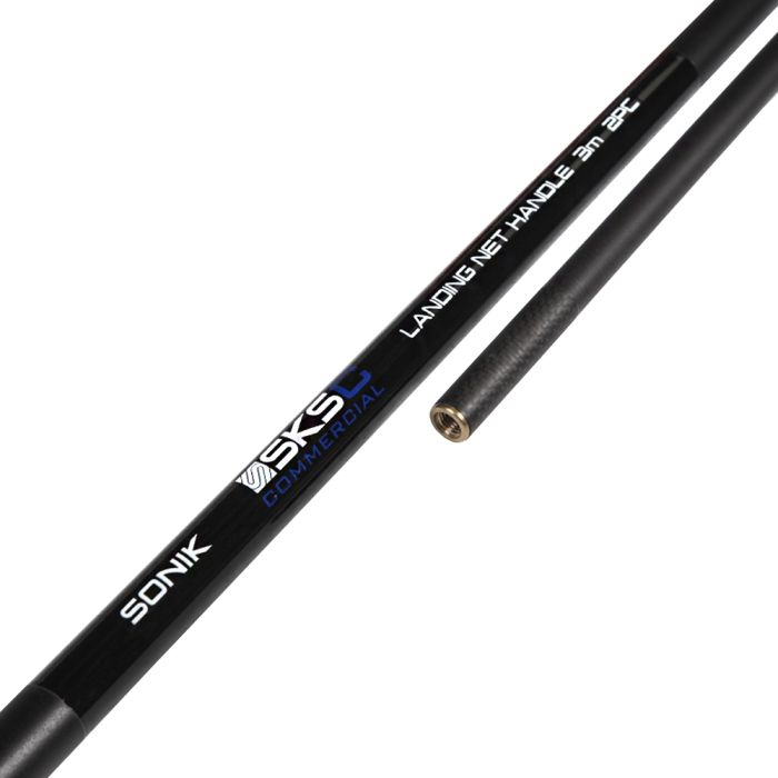 Manche d'épuisette en carbone haut module, ultra rigide et léger. Conception démontable, zones d'usure renforcées, poignée peinte et inserts filetés sont à la fois collés et épinglés pour une durabilité maximale. Le bout de la poignée est protégé par un robuste bouchon à vis en métal qui maintient également les sections bien fixées pendant le transport.