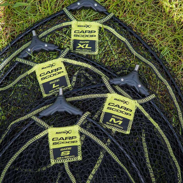 To make netting fish as easy as possible, this landing net head features a wide holed mesh which offers lower resistances through the water, great when you need to scoop fish during a match. Another feature that helps when netting fish is a non-spook black aluminium rim and mesh. Matrix have finished this landing net head off with an anti-corrosive metal thread allows this fishing net to be used with a variety of landing net handles. Available in a range of sizes from Small to XL, this range of landing net heads will handle any fish you are likely to encounter on commercial fisheries, when match fishing.
