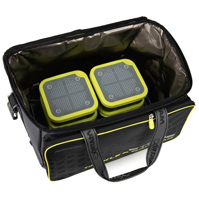 At the heart of the bag is a generously sized main compartment, foiled-lined to maintain the freshness of your bait. Its spacious design comfortably holds 8 x 2.2pt bait tubs, providing ample room for a full day's fishing. The foil lining acts as an insulating layer, ensuring that your bait remains at optimum condition throughout your fishing session.