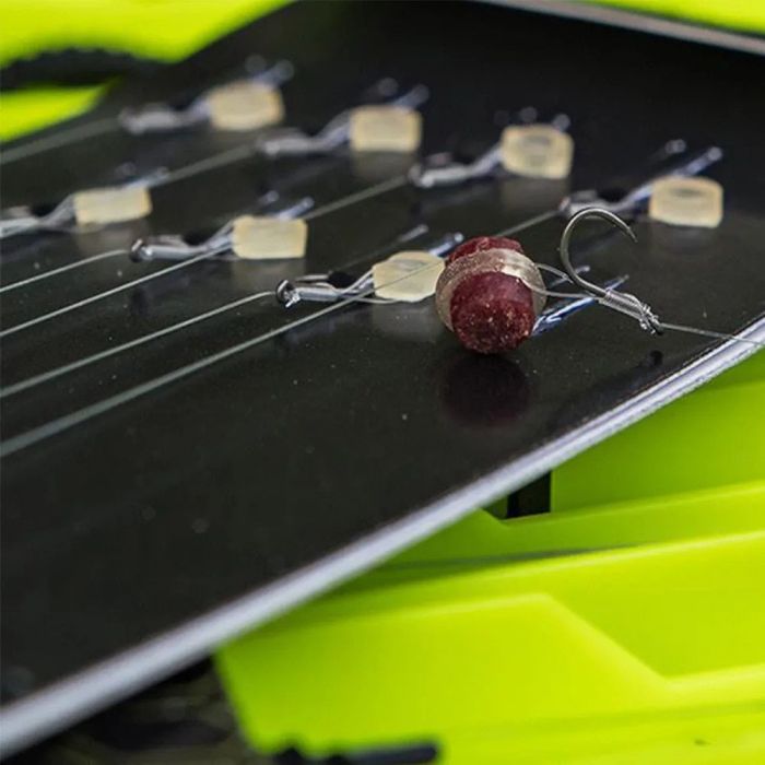 Matrix MXC-6 Barbless 15cm F1 Band Fishing Rigs, Looking to do some bomb and pellet waggler fishing? Then you need the Matrix MXC-6 Barbless 15cm F1 Band Fishing Rigs. These ready-tied rigs feature MXC-6 PTFE coated hooks with an out turned eye for enhanced bait presentation. The hooks are tied to accurate 15cm/6inch lengths of Power micron mono, and each one is topped with a medium sized bait band on the hair. That makes it perfect for securing pellets and dumbbells. So if you want to up your fishing game, pick up a few of these great rigs today.