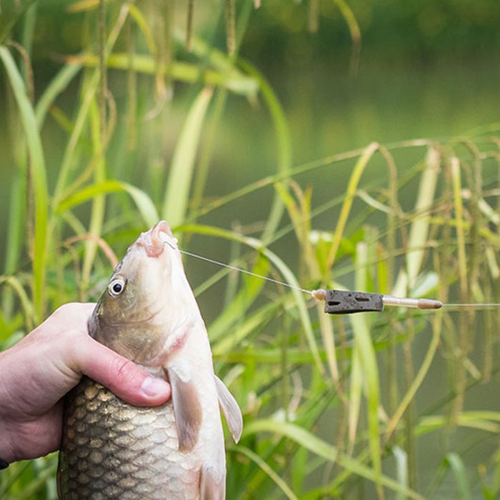 • Avant relevé pour éviter au feeder de se vider à l’impact avec la surface