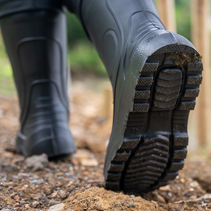 • Empreinte de semelle profonde pour une bonne adhérence sur les sols meubles