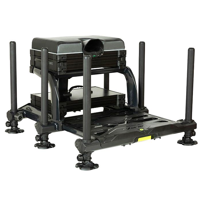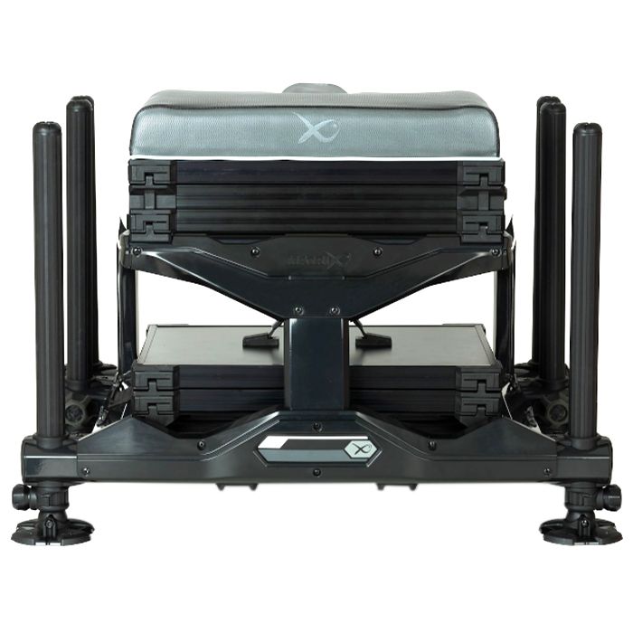 Matrix XR36 Pro Shadow Fishing Seat Box, The Matrix XR36 Pro Shadow is a top quality fishing seatbox that comes with everything you need for a successful day out fishing. The main frame is made from durable, anodised aluminium and features a sliding footplate for easy access. The height is fully adjustable, so you can always be sure of a comfortable position, and the built-in spirit level ensures that you're always sitting level. The box comes supplied with one shallow tray and a deep drawer unit, perfect for storing all your tackle and bait, and the transport lid means that you can easily take it with you when you're on the go.