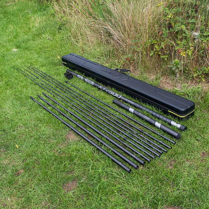 Pack canne XTR500 Elite Pro 13m Euro Canne 13m XTR500 Elite Pro 3x kits competitionPro match (incluant celui dans la canne) 3x kits Pro power 3x sections No.3 1x kit coupelle extensible Twist lock avec jeu de coupelles 1x Mini extension Un fourreau rigide Duralite.