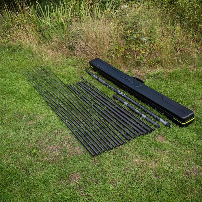 Pack XTR700 Elite Pro 13m Euro Canne 13m XTR700 Elite Pro 5x kits competition Pro match kits (incluant celui dans la canne) 5x kits finesse 3x sections No.3 3x sections No.4 1x kit coupelle extensible Twist lock avec jeu de coupelles 1x Mini extension Un fourreau rigide Duralite.