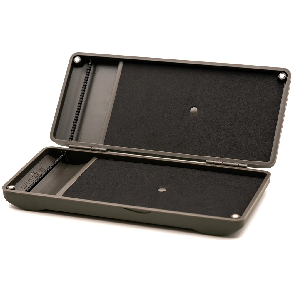 Une autre caractéristique géniale de la Mini Boîte à Bas de Ligne Korda est sa barre à rainures en aluminium, sur laquelle vous sécurisez vos bas de ligne. Cela maintient vos hameçons aiguisés et empêche vos bas de ligne de se tordre lors du transport. Le côté des hameçons de la boîte est légèrement encastré. Cela fourni encore plus de protection aux pointes de vos hameçons, car vous devez vous assurer qu’ils soient le plus aiguisés possible pour avoir la meilleure chance d’accrocher votre prise lorsqu’il a pris votre appât. Pour finir la boîte est en caoutchouc au toucher doux, ce qui est non seulement agréable à porter mais aussi vous donne une meilleure prise, pratique lors des journées froides et mouillées. Avec une couleur verte carpiste, la boîte va s’accorder parfaitement avec le reste de votre équipement.