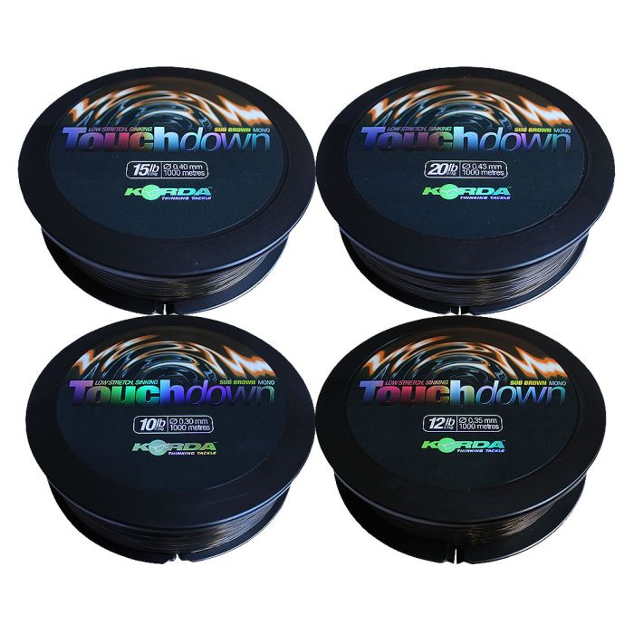 Le Monofilament Korda Touchdown est disponible en deux versions : Vert clair et Marron foncé ce qui conviendra à toutes les conditions du fond du lac que vous rencontrez lors de vos séances de pêche. Le vert à faible visibilité s'intègre parfaitement dans les mauvaises herbes et là où l'eau a développé une teinte verte tandis que le brun s'intègre à merveille dans des lacs limoneux. Peu importe le lieu où vous pêchez l’une ou l’autre de ces couleurs conviendra à l’eau et vous permettra d’attraper les poissons sans qu’ils remarquent votre ligne. Son camouflage excellent, associé à ses performances de haute qualité, augmentera certainement la taille de vos prises.