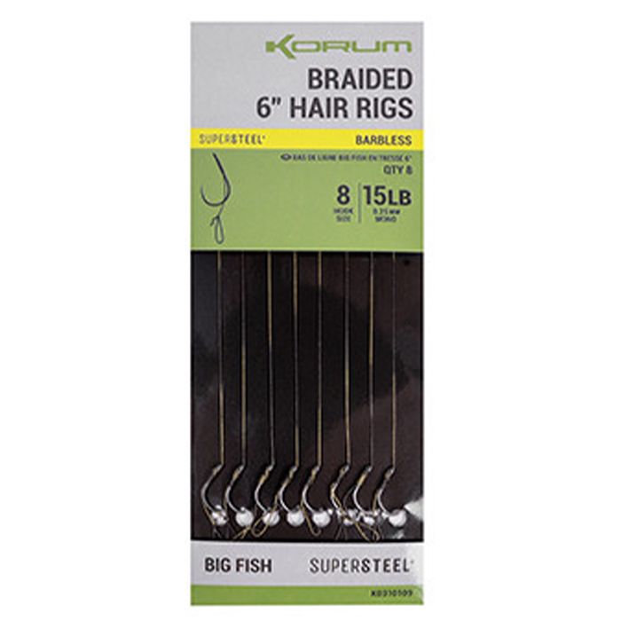 Avec les Montages Cheveux Tressés Gros Poissons Korum, vous pouvez sécuriser des montages cheveux plus solides lorsque vous pêchez de plus gros poissons. Il mesure 6 pouces de long et se compose de tresse Korum Smokescreen (15lb) et d'hameçons Korum Japanese Supersteel qui permettent de camoufler parfaitement le montage en cheveux.