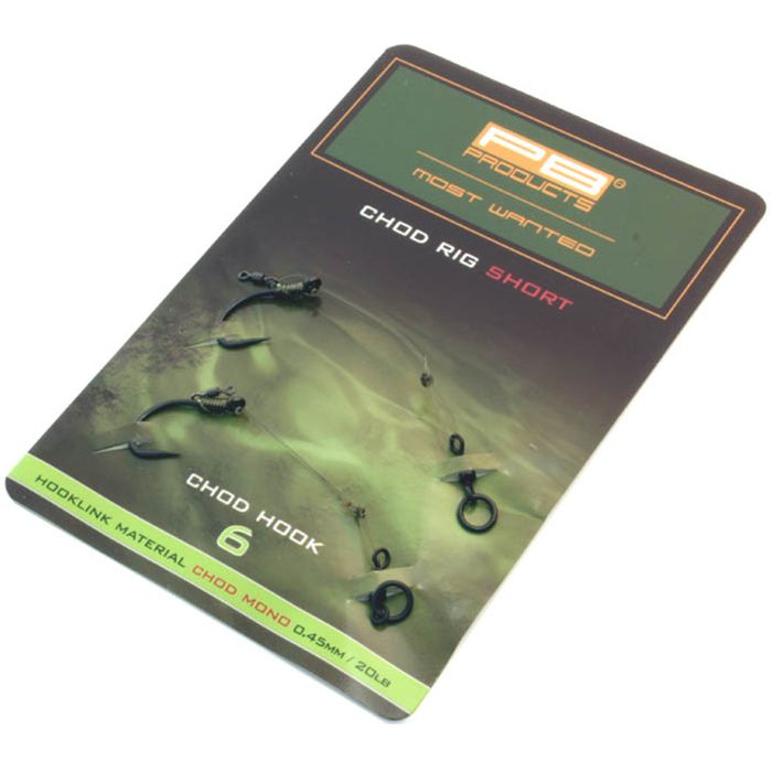 Un montage Chod parfait et prêt à l'emploi. Ces rigs chod (2 par pack) sont noués avec du fil 100% fluoro carbone (le Ghost Butterfly) et équipés de l'hameçon PB Products Chod. Un hameçon à pointe droite, qui pique beaucoup plus vite, ce qui est indispensable pour pêcher avec le Chod. Les montages sont noués avec le Ghost Butterfly 27lb, ce qui les rend très fiables. Ce Ghost Butterfly peut être courbé à sa guise. Cette ligne est également très rapide au niveau des boutons. Les Chod Rigs de PB Products sont équipés du Chod Rig Swivel et s'adaptent donc directement au Sliding Naked Chod Bead 0.75g. En outre, le Bait Swivel 24 est monté sur le D-rig pour un montage parfait de votre appât.