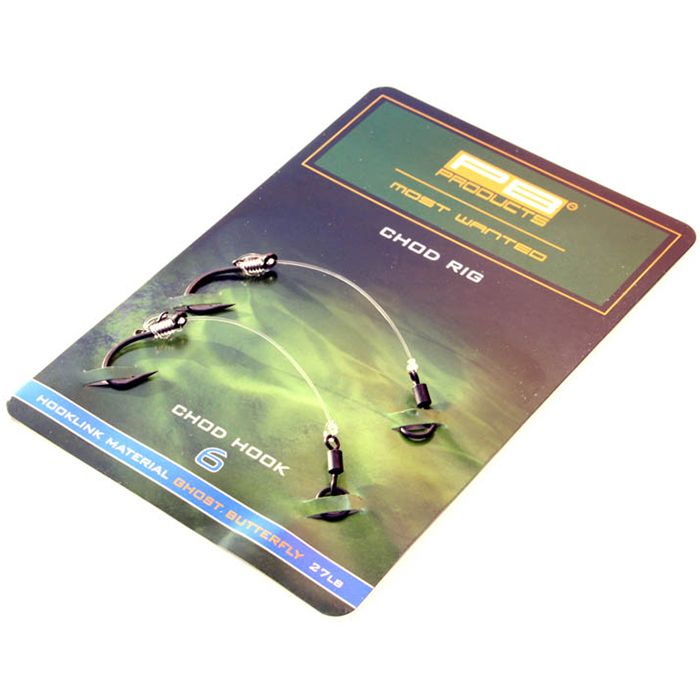 Un montage Chod parfait et prêt à l'emploi. Ces rigs chod (2 par pack) sont noués avec du fil 100% fluoro carbone (le Ghost Butterfly) et équipés de l'hameçon PB Products Chod. Un hameçon à pointe droite, qui pique beaucoup plus vite, ce qui est indispensable pour pêcher avec le Chod. Les montages sont noués avec le Ghost Butterfly 27lb, ce qui les rend très fiables. Ce Ghost Butterfly peut être courbé à sa guise. Cette ligne est également très rapide au niveau des boutons. Les Chod Rigs de PB Products sont équipés du Chod Rig Swivel et s'adaptent donc directement au Sliding Naked Chod Bead 0.75g. En outre, le Bait Swivel 24 est monté sur le D-rig pour un montage parfait de votre appât.