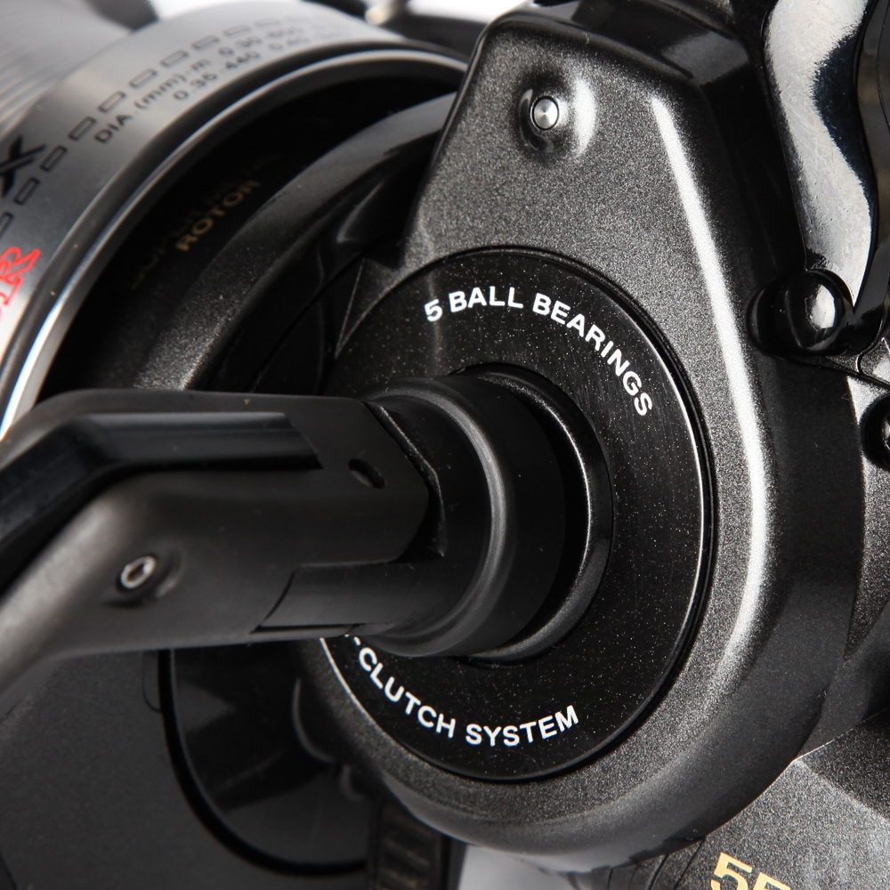 La première chose que vous remarquerez à propos de ce moulinet, en dehors de son aspect époustouflant, est la manière dont la marque a associé deux de ses technologies les plus impressionnantes afin de créer un moulinet haute performance qui fonctionne même dans les cas les plus extrêmes. La première de ces technologies est le mécanisme BR innovant à axe double de Daiwa. BR signifie Bite 'n' Run - la technologie de débrayage « freespool-to-full-drag » intégrale de Daiwa qui est actionnée par un levier arrière et qui permet à votre prise de prendre la ligne dans un débrayage contrôlé jusqu'au moment où vous voulez engager votre frein. Cette technologie a été associée à une configuration incroyablement efficace de la bobine, vous permettant de charger votre bobine grande contenance avec une énorme longueur de ligne pour une performance de lancer à distance impressionnante. Le moulinet de taille 5000 peut contenir jusqu'à 370 m et 14 livres de fil, alors que celui de 5500 peut contenir jusqu'à 440 m de la même ligne, de sorte que vous ne vous sentirez jamais à court au lancer. Il fonctionne vraiment à la pointe de la technologie des moulinets.