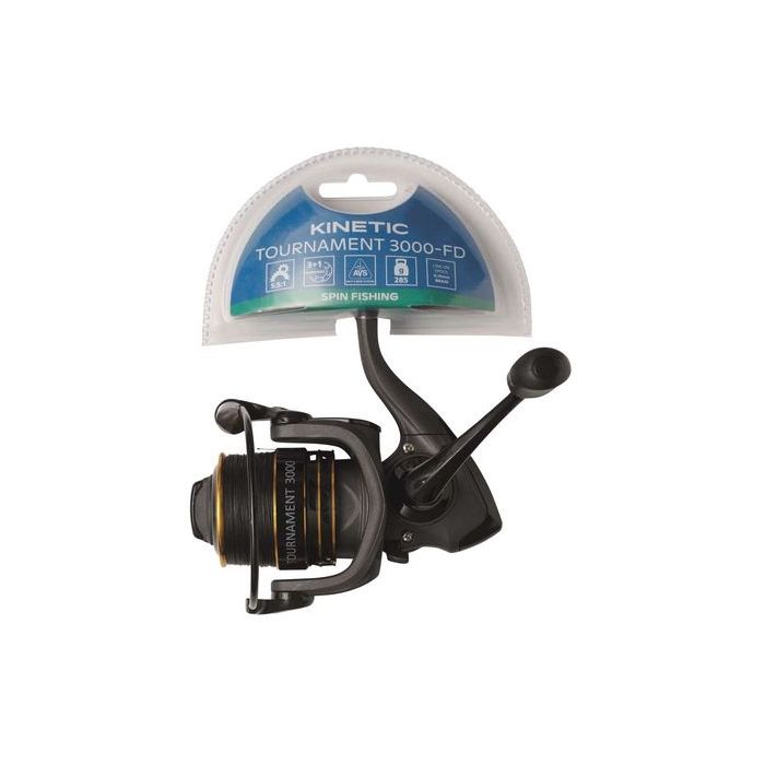 You don't have to spend a lot to get a quality spinning reel. The Kinetic Torunament FD spinning reel has everything you need to get on the water and start catching fish. Its rugged graphite body and rotor are built for the long haul, as is the double-anodized aluminum spool. Light and strong, it provides trouble-free casting and retrieving. A long-time favorite, it runs on a smooth 4-bearing system that includes instant anti-reverse.