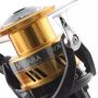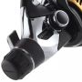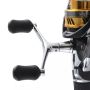 Cette version à double poignée permet vraiment de tirer le meilleur parti de la récupération avec un meilleur équilibre et une sensation plus douce. Le moulinet est joliment fini avec un superbe platine et or métallique qui ne manquera pas d'attirer l'attention des autres pêcheurs au bord de l'eau.