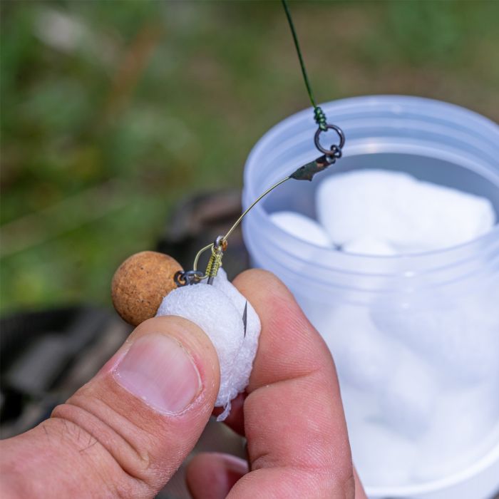 La Mousse Dissolvante Rigwise peut aussi être utilisée pour remplir vos spods à bout ouvert, ce qui va empêcher la perte d’appâts secs tels que des pellets et des bouillettes coupées lors des longs lancers durs.