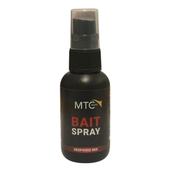 MTC Baits Response Red Bait Spray 50ml, The Bait Spray Range has been specially developed to make your hookbaits (boilies, pop-ups, hookbaits, wafters) even more attractive. A few 'sprays' - by means of an atomizer - on your hookbait and you boost the instant attraction enormously! Bait Sprays are perfect for deploying without affecting the buoyancy of wafters and pop-ups. Bait Sprays absorb quickly into the hookbait due to the light weight (watery viscosity) of this liquid trigger.