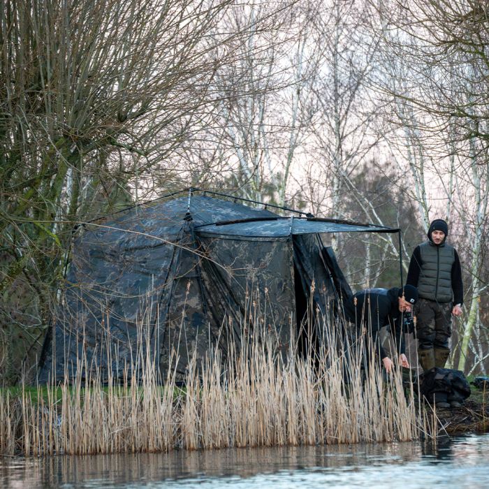 Toujours doté d’un cadre qui se monte rapidement, avec une hauteur généreuse et de grands panneaux latéraux en maille qui forment des fenêtres afin faire rentrer la lumière ou encore ventiler l’intérieur du Blockhouse. Possible de rajouter un Skull Cap T1211 (vendu séparément) pour augmenter l'isolation et réduire la condensation. Le Blockhouse CAMO PRO est l’abri de session par excellence!