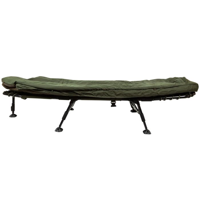 USB connectivity and underside power pack pocket; All weather charging of smart devices; Extended, adjustable lumbar support through the weight bearing section of the mattress; Smooth nylon underside to duvets for snag free movement when sleeping; Inner body bafes for improved heat retention; Heavy duty crash zips with anti snag bafes; Outer full length draught bafe along duvet; Fast ft elastic toggles for Pillow, Shrouds and Mattress Sheet; Single support leg behind head of Compact and SS3 model; Single support legs at head and base of SS4; Enlarged hinge mechanism with twin compression straps for at transport; New improved spring loaded leg assembly with one touch adjustment; Mesh valuables pockets on both sides of the frame; Compact: 192cm L x 78cm W x 25cm H; Leg adjustment: 25-33cm;
