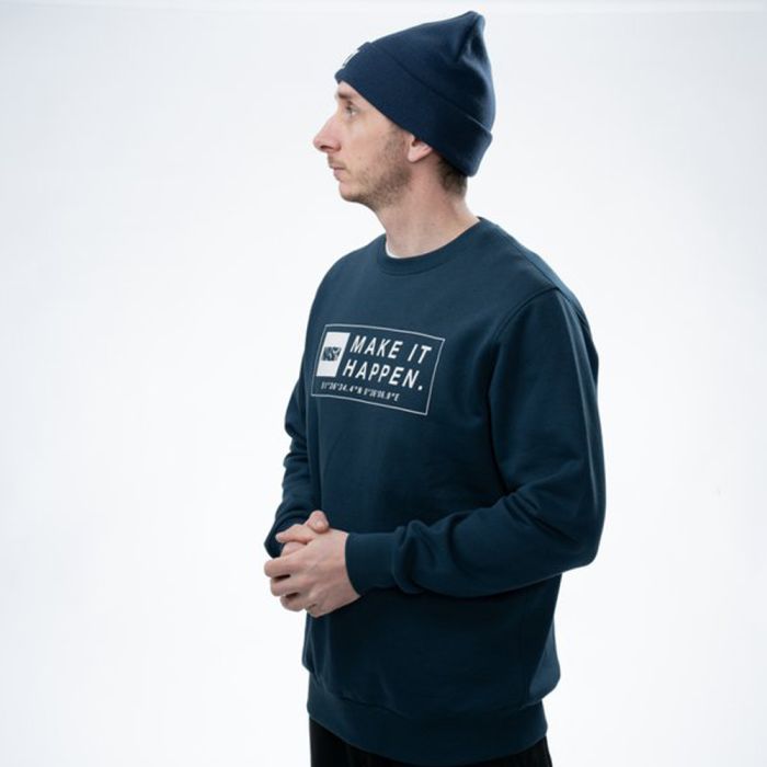 Version bleu marine du sweat Coordinates, pour ceux qui préfèrent un pull sans capuche. Disponible du S au XXXL.