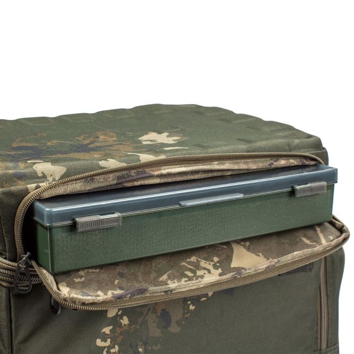 Interlocking base design; Can be stacked on barrows or in shelters for space efficiency; Velcro retaining strap secures both sizes to a barrow front bar; Zipped top compartment for tackle boxes; Can be accessed easily even under a bed; Twin zipped side pockets and twin internal zipped mesh pockets ; Padded, adjustable and removable shoulder strap; Dimensions: 36.5cm H x 58cm W x 30cm D;