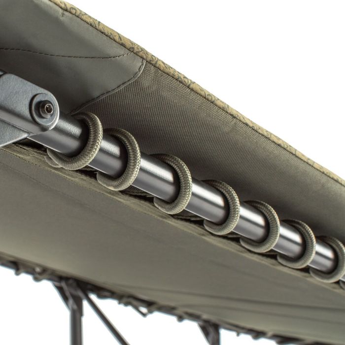 The Bed variant of the 3 leg Nash Tackle Sleep System; High tension elastic and webbing support; Designed to provide maximum comfort; Micro eece finish mattress for warmth; Nash fish skin pattern skirt; Raised pillow and a smart Nash embossed logo; Enlarged hinge mechanism allows easy transport with sleeping bags; Twin compression straps ensuring the bed always folds at; Innovative one touch level lock leg mechanisms; Offers easy adjustment for comfort on any bank; Elastic loops allow the optional extra pillow to secure to the bed;