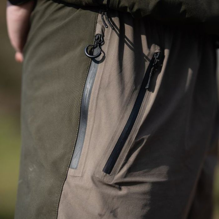 Ses caractéristiques incluent des poches zippées, ainsi qu’un accès zippé aux poches de shorts ou de pantalons portés en dessous. Les genoux et l’assise renforcés assurent une meilleure durabilité du tissu dans les zones soumises à l’usure. Le pantalon est également doté d’un ajustement Velcro aux chevilles et de fermetures éclair prolongées aux chevilles, permettant de l’enfiler facilement par-dessus des bottes si nécessaire.