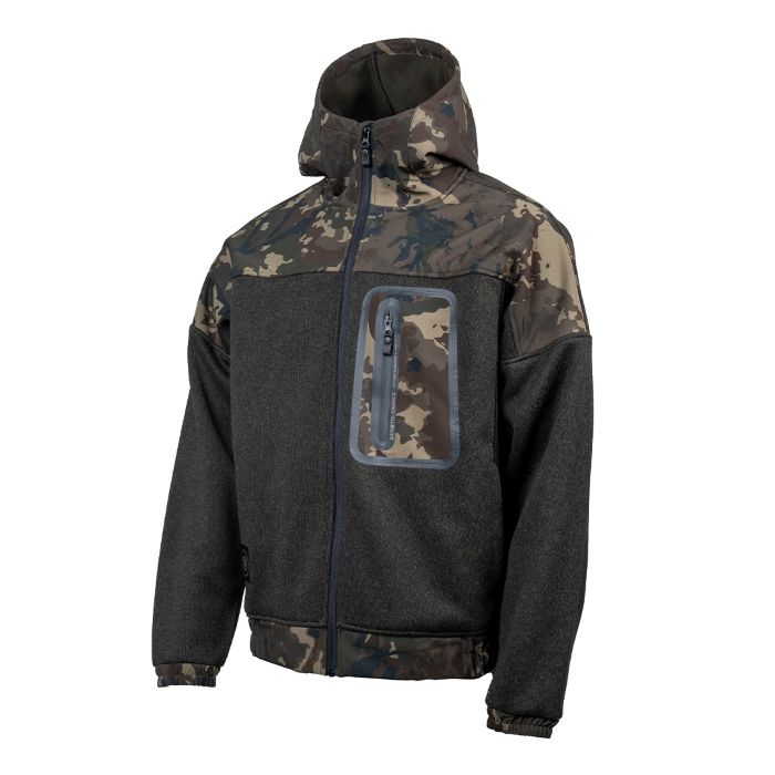 Dotée de panneaux camouflages imperméables sur les épaules et les coudes, ainsi que d'une poche Tech Protect résistante à l’eau.