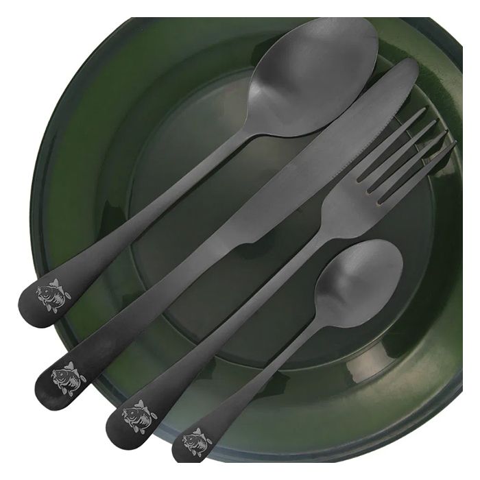 A practical, good‑looking dining set for anglers and outdoor use. This 4‑piece cutlery set includes all the essentials in a compact pack, finished in a sleek matt effect with the NGT Carp logo printed on each handle. Supplied in a zipped neoprene case to keep everything clean and organised in your bivvy, tackle bag or camping kit.