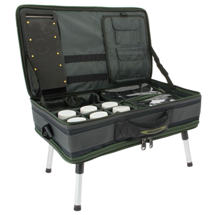 La table de biwy de chez NGT est super pratique à emporter durant vos sessions de plusieurs jours. Elle vous permet de garder vos affaires et accessoires important prêt de vous sans se salir par terre. Les bords de la table sont relevés de manière à ce qu’aucun objets n’en tombe. Les pieds sont réglables et possèdent un bout en caoutchouc.