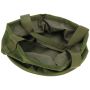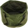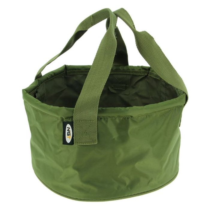 A green collapsible ground bait bowl with carry handles made from PVC material.