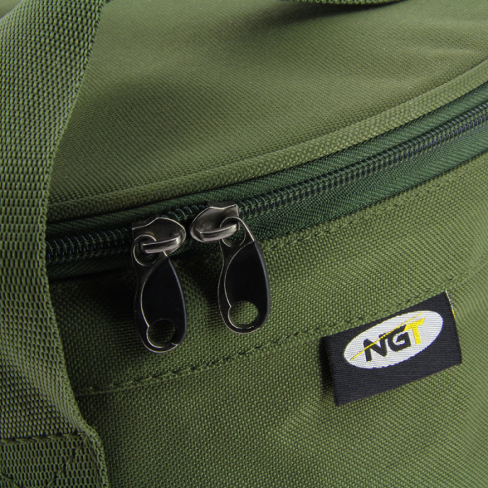NGT Bait Bin Pliable avec fermeture éclaire. Ceci est plus qu’un simple sac à appâts ! Ce sac possède une partie isolante ce qui vous permet de garder plus longtemps vos appâts tel des graines, freezerbaits, etc… Vous pouvez le transporter en toute simplicité grâce à sa fermeture éclaire solide ainsi que ses poignées pratiques. L’extérieur du sac est fabriqué à partir de polyester de type 820D ce qui le rend complètement étanche.