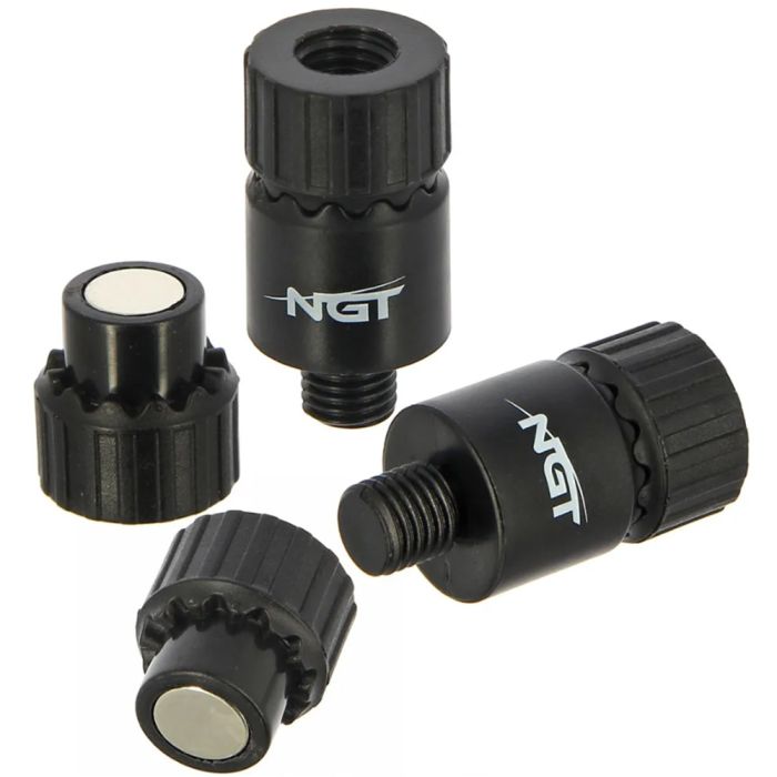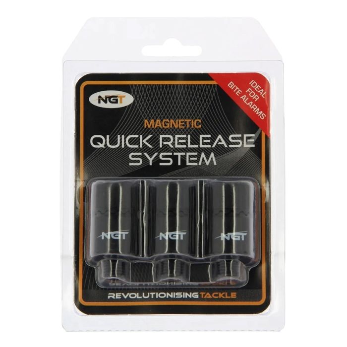A pack of 3 stubby black plastic, magnetic quick release systems on a double blister.