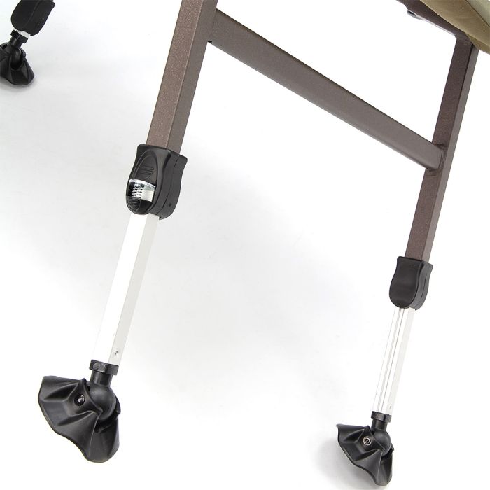 The XPR chair is a sturdy, two tone chair with armrests and four fully adjustable legs with mud feet. A great chair for both long and short sessions. Now with a velcro strap for rod support.