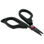 Les ciseaux hyper coupant spécial tresse et mono de haute qualité présentent une conception améliorée avec des lames dentelées en acier inoxydable revêtues de Téflon de haute qualité. Une poignée ergonomique en TPR noir antidérapant avec une finition douce au toucher. Idéal pour couper les lignes PE/tressées et le nylon, même sans tension.
