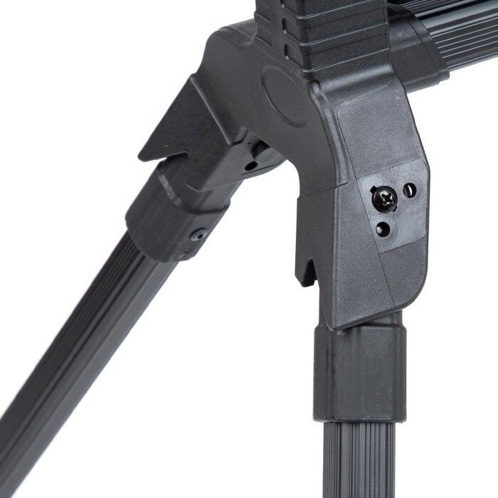 Construit sur un cadre robuste à quatre pieds avec deux pieds extensibles, ce rouleau s'adapte sans effort aux terrains accidentés. Le système de réglage en hauteur permet un positionnement rapide et sûr, tandis que les montants intégrés maintiennent fermement votre canne en place tout au long de votre session.
