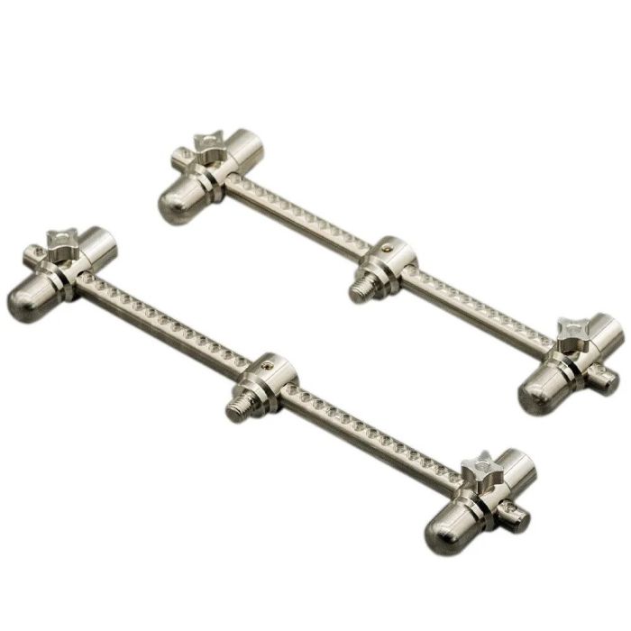 OMC Elbowz Buzzer Bar Inox : La barre porte-buzzers polyvalente ultime pour les pêcheurs. Conçue en acier inoxydable 316 de qualité supérieure, cette barre offre une flexibilité maximale et une facilité d'utilisation exceptionnelle. Disponible en différentes tailles pour répondre à vos besoins, l'OMC Elbowz Buzzer Bar convient aux pêcheurs avec des montages de 2 ou 3 cannes, et son disponible en version mince, standard et large.