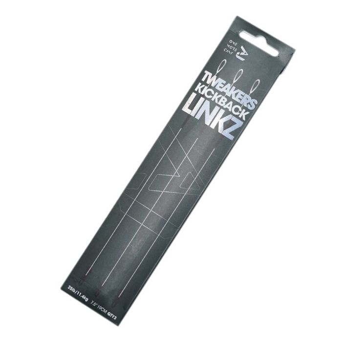 OMC Tweakers Kickback Linkz With Dog bone Ronnie Clip, Do it better, do it smarter. The Tweakers range is all about evolving ideas to improve your performance. Combining convenience and reliability with the OMC Tweakers KICKBACK LINKZ. A Fused Fluorocarbon Hooklink comprising of the premium KICKBACK 25lb Hooklink attached to the Tweakers Tungsten Dog Bone Ronnie Clips at the Hook End & the 30mm Blend Tungsten Anti Tangle Sleeve ready to slide over your Vitabitz QC Swivel at the Lead System end. Ronnie Rig and Hinge Rig fans... You've never had it so good!