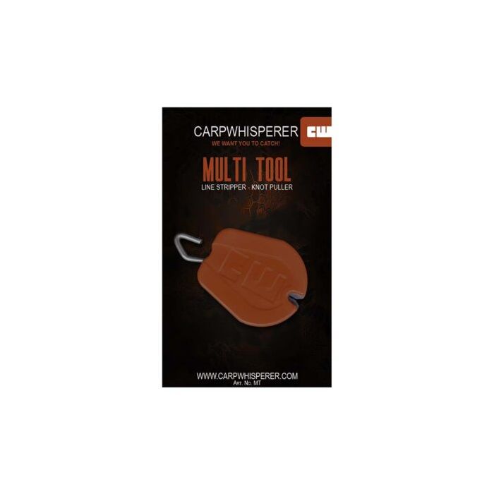 Le Carp Whisperer Multi Tool est spécialement conçu pour retirer le revêtement des hameçons enrobés comme le Coated Hooklink. Cet outil à bande multifonctionnel possède une incrustation métallique avec une petite encoche. Il est ainsi très facile de faire une petite entaille dans le revêtement. Bien sûr sans endommager le noyau tressé du matériau du hooklink. En somme, cet outil pour la carpe est multifonctionnel ! En plus de dénuder le matériel d'hameçon enduit, vous pouvez également l'utiliser comme pulla. Comme vous pouvez le constater, il dispose d'un crochet métallique robuste qui est idéal pour tirer des nœuds serrés !