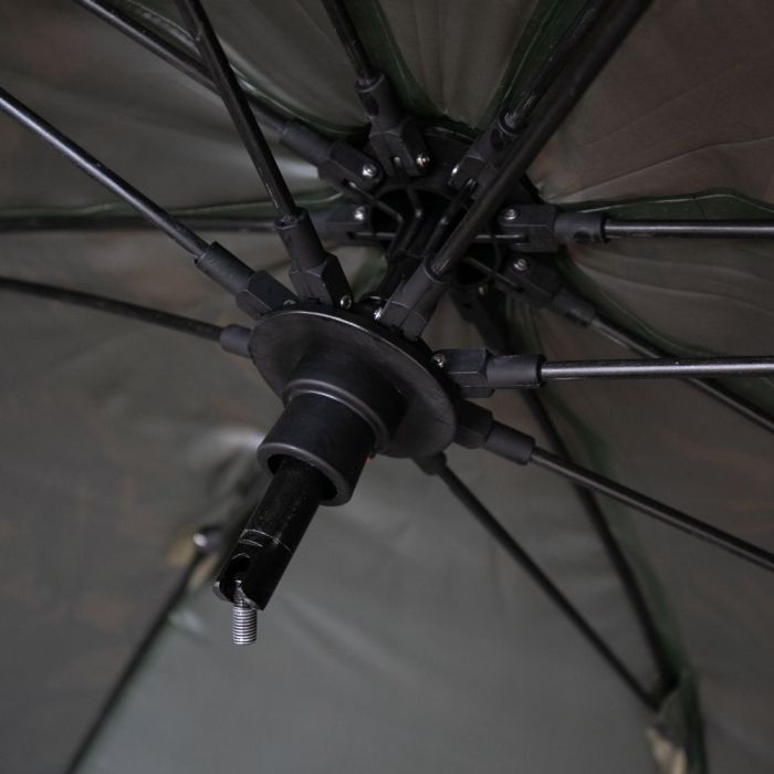 Avec un cadre fabriqué à partir de fibre de verre résistant, ce brolly de rive vous donne toute la rigidité stable dont vous avez besoin pour résister au pire de la météo, à un poids léger impressionnant de 4kg, parfait pour mettre sur une brouette jusqu’à la rive pour une session courte, et rendant le parapluie facile à mettre en place et à démonter sans aide. Le brolly est fourni avec des capuchons de tempête jumelés pour le montage stable de tiges tempêtes, et quatre piquets, pour vous donner une confiance totale que votre abri de rive va résister au plus sauvage des temps.