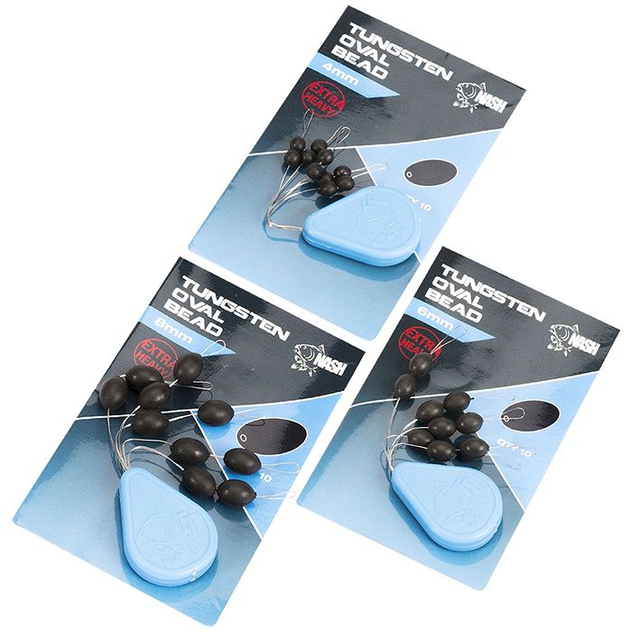 Perles ovales en tungstène montées sur fil, à forte adhérence. Utilisez-les pour piéger les chods nus, contrebalancer les pop ups ou comme perles tampons pour protéger les nœuds des montages courants. Disponibles en 4mm, 6mm et 8mm.