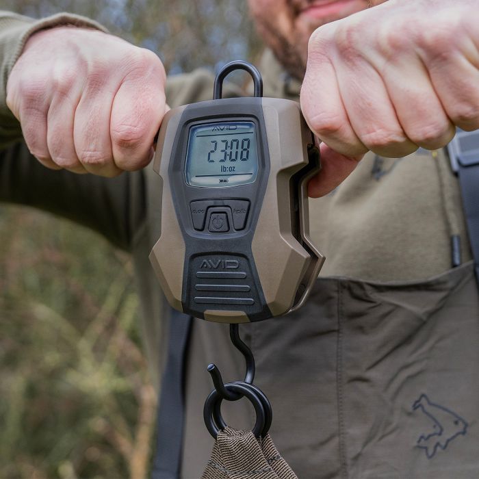 Le Peson Digital d’Avid Carp a été conçu pour faciliter la tâche d’enregistrer précisément le poids d’un poisson. Doté d’un cadre en acier inoxydable super résistant encastré dans un corps surmoulé renforcé, tous les efforts ont été utilisés pour assurer qu’il résiste aux stress et rigueurs nécessaires pour peser les gros poissons. Les bras dépliables intégrés sont aussi fabriqués à partir d’acier inoxydable puissant avec des gaines surmoulées renforcées ergonomiques. Capable de peser des poissons jusqu’à 132lbs/60kg en incréments de 1oz. L’écran rétro-éclairé est protégé par une couverture scellée renforcée qui protège à la fois contre l’entrée d’eau et les dommages. Le format à 3 boutons simple le rend très facile à utiliser.