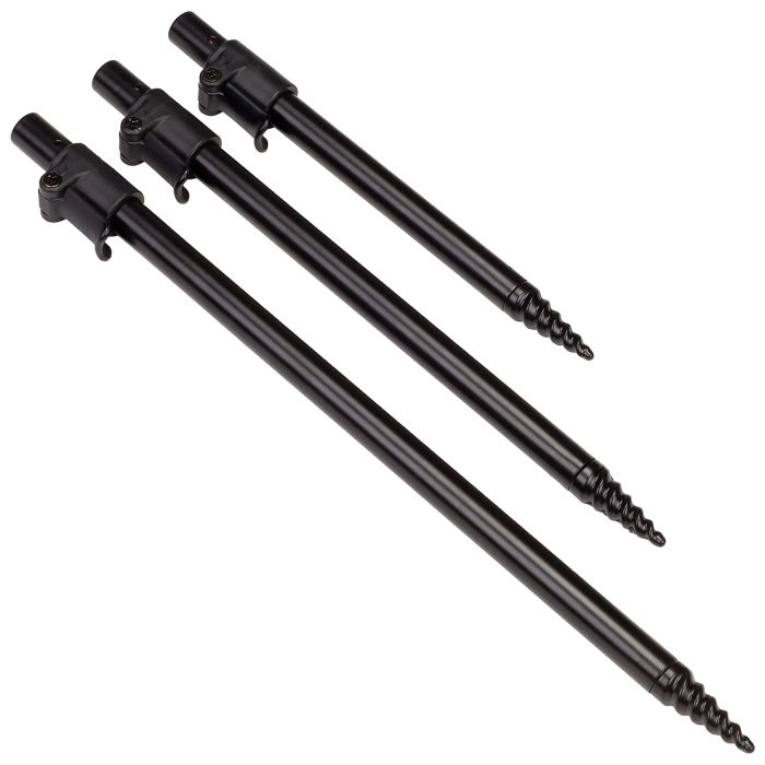 Piques de pêche moires mattes utilisant la pointe auger pincée haute puissance éprouvée pour les conditions de sol dur. Doté d’un verrouillage cam lock élargi pour une facilité d’utilisation en tout temps, et offrant un verrouillage sécurisé sans torsion grâce à la section interne à rainures.