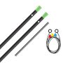 Avec un cordon de mesure de 12 pieds (3,6 mètres), des marqueurs qui soulignent les distances en 4 couleurs haute visibilité et des embouts acryliques haute visibilité avec fente isotope. Les piquets sont fournis dans un étui de transport pratique.