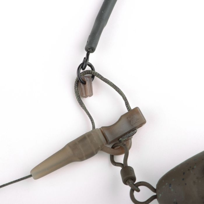 This highly innovative lead clip system is unique due to the leader/mainline not running through the centre of the clip. By using a custom designed Shocker Snap & Pin, the rig comes out of the side of the clip. This makes sure that the fish will instantly hook itself on the full weight of the lead. When the fish starts shaking its head, the shocker system will kick in. In the case of a line cut the product is designed to allow the fish to simply remove the complete system guaranteeing fish safety. The streamlined design of this unique and subtle system stands out in effectiveness.