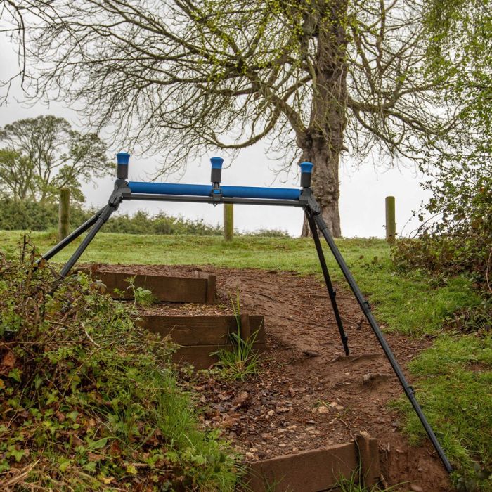 Doté de quatre pieds à double extension, tous entièrement réglables, il est facile de s'attaquer aux terrains accidentés ou pentus. Chaque pied possède son propre mécanisme de verrouillage, ce qui garantit l'absence quasi-totale de mouvement latéral, un problème courant avec certains rouleaux Le rouleau est incroyablement stable, même lorsqu'il est déployé à la hauteur maximale et au-delà avec les rallonges de pieds. Deux réglages d'angle sont facilement repérables, ce qui permet à l'utilisateur d'ajuster chaque pied aux reliefs de la berge.