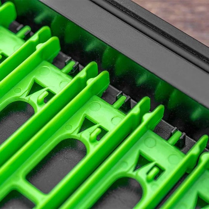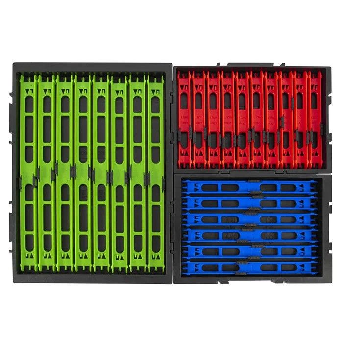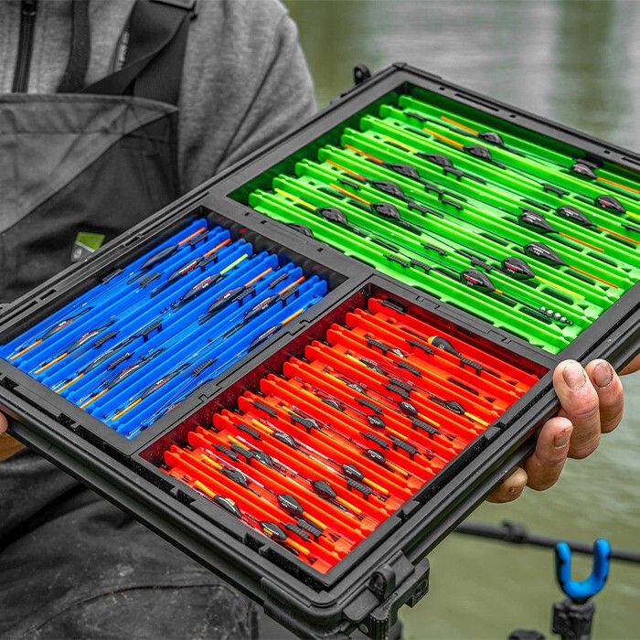 Les plateaux à plioirs Interlok sont totalement personnalisable afin de vous permettre de ranger efficacement vos plioirs dans vos casiers Absolute ou Inception. Les plateaux de tailles différentes viennent se clipper les uns dans les autres puis se logent parfaitement dans les casiers 26mm Absolute ou Inception. Une configuration populaire est de placer un plateau de chaque dans un casier, cela vous permet de stocker un large choix de flotteurs différents dans un même et seul casier. Pour les pêcheurs utilisant plusieurs casiers ou des flotteurs de même taille, les plateaux de même taille peuvent être clippés entre eux afin de créer une large capacité de stockage de pliors de même taille. Le plateau pourvu de plioirs de 26cm occupe 50% de la capacité d'un casier tandis que ceux pourvus de plioirs de 13cm et 18cm occupent 25% de la capacité d'un casier, chaque combinaison égale à 100% crée un casier peu profond Inception ou Absolute rempli. Disponible en: Interlok Winder Tray - 13cm Rouge Interlok Winder Tray - 18cm Bleue Interlok Winder Tray - 26cm Verte