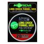 Citations de Danny Fairbrass : Je pêche à longue distance sur de nombreuses eaux et je sais que vous êtes nombreux à le faire, c'est pourquoi nous avons décidé de produire le Longchuck Funnelweb, la version la plus fine de tous les systèmes PVA. En ayant un bâton de PVA très fin, composé d'une mie très attrayante, enfilé sur le bas de ligne, je peux garantir que votre montage ne s'emmêlera pas pendant le lancer. J'ai appris en filmant sous l'eau qu'un tas de miettes sur une zone fortement appâtée sera littéralement balayé en quelques minutes si les poissons sont là et sont d'humeur à se nourrir, même si ce ne sont pas des carpes. Mais, le même tas de miettes posé parmi une large dispersion de bouillettes (parce que c'est tout ce que vous pouvez obtenir à distance extrême, peu importe à quel point vous êtes un bon lanceur) ou complètement seul restera juste à côté de l'appât de l'hameçon jusqu'à ce que quelque chose le traverse. À ce moment-là, avec un peu de chance, vous obtiendrez une prise, mais si ce n'est pas le cas, votre montage est toujours dans le meilleur état possible si vous venez de lancer un appât à hameçon unique. Donc, en bref, l'utilisation d'un bâton ne peut qu'augmenter vos chances de prise et ne peut en aucun cas les entraver, à condition bien sûr que vous puissiez l'amener là où se trouvent les poissons. Avec un diamètre de seulement 15 mm, le Long Chuck Funnel Web donne l'impression de ne pas être là lorsque vous êtes sur le point de lancer, ce qui le rend parfait pour la pêche à toutes les distances et sur tous les types de fond de lac. Dans la vase, elle empêchera l'appât d'être traîné aussi loin dans la vase et aidera à empêcher la vase de masquer l'attraction de l'appât. Sur le gravier, il permet de s'assurer que l'hameçon est droit et prêt à accrocher la carpe et dans les herbes, vous pouvez vous assurer que l'hameçon n'est pas obstrué par les herbes lorsque le montage repose sur le fond. Vous pouvez même écraser le tout à travers des herbes lâches comme l'herbe canadienne ou l'herbe à choux, en attachant délibérément un bas de ligne court de 10-15cm et ensuite faire un bâton presque de la même longueur. Lorsque vous lancez, maintenez la ligne tendue lorsque le plomb touche la surface et laissez-le tomber sur une ligne tendue. Le bâton accordé à un gros plomb devrait s'écraser directement à travers les herbes et finir dans la zone des racines plus clairsemées. Le bâton empêchera l'hameçon de s'accrocher et, une fois fondu, laissera le bas de ligne (que je recommande d'être fait de tresse) suspendu sur ou entre les tiges avec l'appât et l'hameçon exposés. Une carpe en train d'essorer sera facilement capable de mettre l'hameçon dans sa bouche parce que le bas de ligne tressé est si flexible et que l'hameçon n'a pas été attrapé sur son décent. Une fois encore, le Longchuck s'applique aux recharges à code couleur.